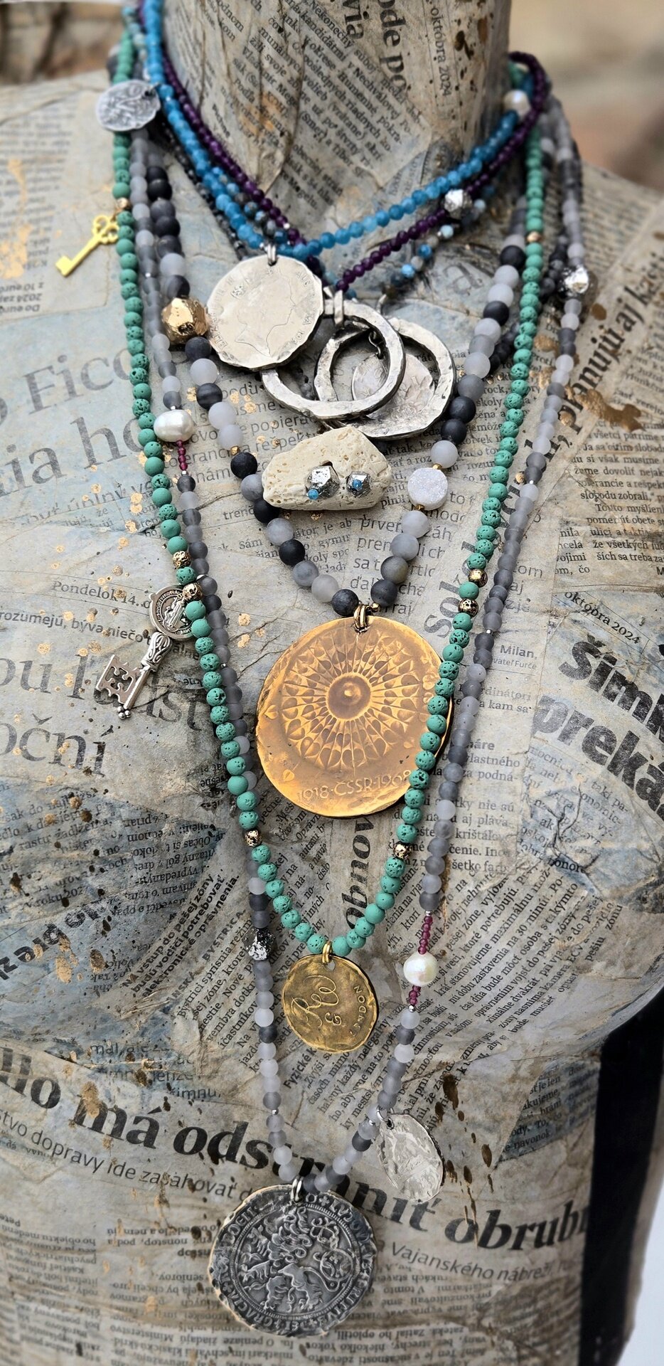 Náhrdelník - Polodrahokam - Starodávna minca